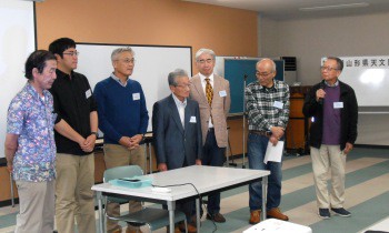 発表に聴きいる参加者の皆さん。 和気あいあいの昼食タイム。 午後からも発表が続けられました。 <今回の参加者数> 山形天文同好会 9名 南陽天文愛好会 2 小さな天文学者の会 2 北村山天文愛好会 1 星遊会 1 個人参加 1 (合計16名) <発表数> 9件 次回の担当は南陽天文愛好会さんとなります。 |