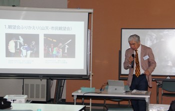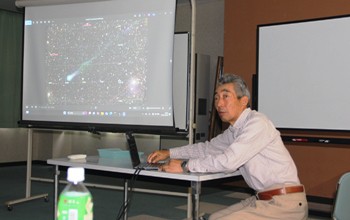 望遠鏡の原理などを虫めがねを使って解説。 昼の部終了後に山天の佐藤会長から参加児童に終了証の授与です。 <夜の部の様子> 夜間観察は雨で出来ませんでした。 屋内で映像などを使った天体の説明等を行いました。 山天会員に依る望遠鏡で天体を探すデモンストレーション、星は見えないが子供達も付き添いのお父さんお母さんも興味津々でした。 悪天候で天体観望は出来ませんでしたが欠席者も無く集まってくれました。 次回は晴れることを願って終了となりました。 |
