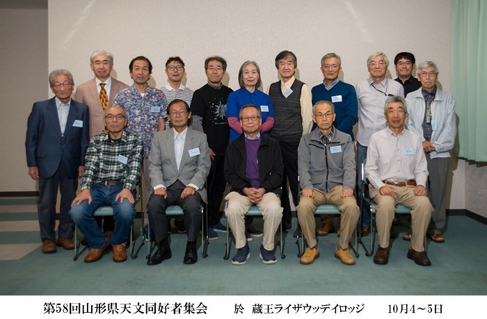 | 2025/10/04〜05 第58回 山形県天文同好者集会 今回は山形天文同好会が担当となりました。 場所は一昨年と同じく蔵王ライザのウッディロッジで宿泊での開催となりました。 参加者の自己紹介です。 発表の様子です。 |